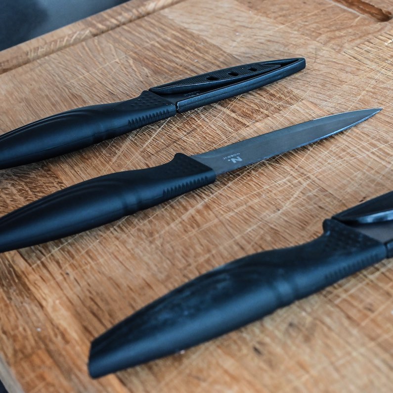 Man bör undvika att skära i frysta varor då bladet är poröst och kan då spricka. Knivarna kommer i ett 3-pack med följande längd: 8, 10 och 12 centimeter vilket täcker de flesta användningsområdena i köket.